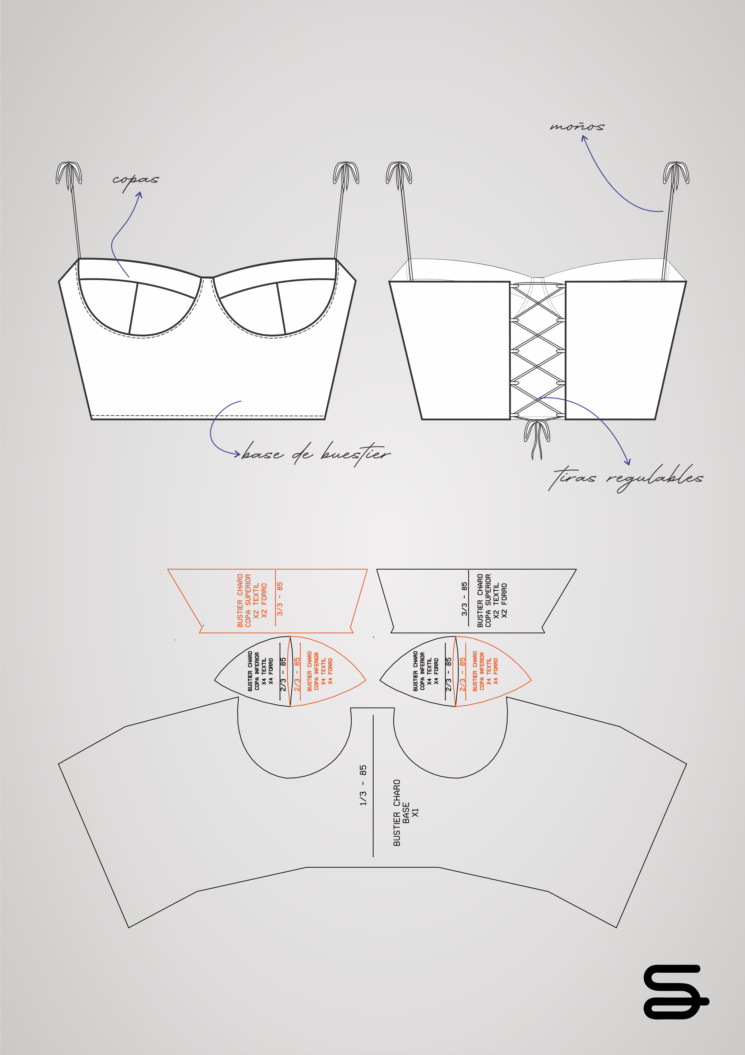 Moldería descargable del bustier Charo: diseño femenino y estructurado, pensado para lograr un calce preciso y prolijo. Ideal para lencería, tops o piezas de autor. Incluye piezas listas para imprimir y ensamblar.
